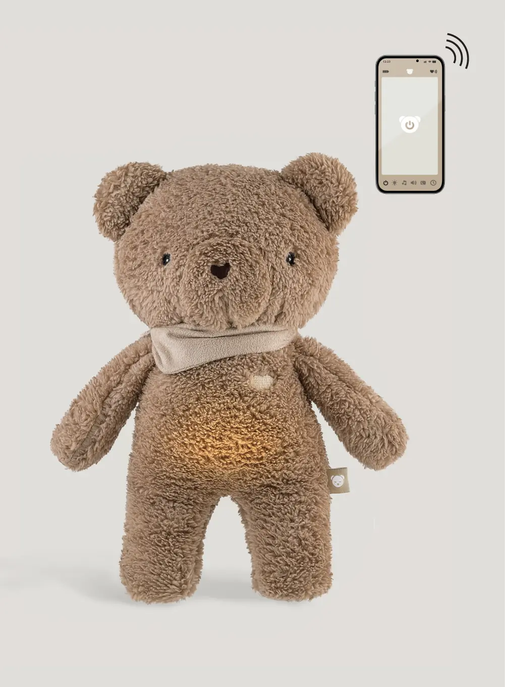 Der braune Teddybär mit sanften Beigedetails ist eine vielseitige Einschlafhilfe für Babys. Mit seinen durchdachten Funktionen wie beruhigenden Klängen, sanftem Nachtlicht und der komfortablen App-Steuerung schafft er eine Umgebung voller Ruhe und Geborgenheit.