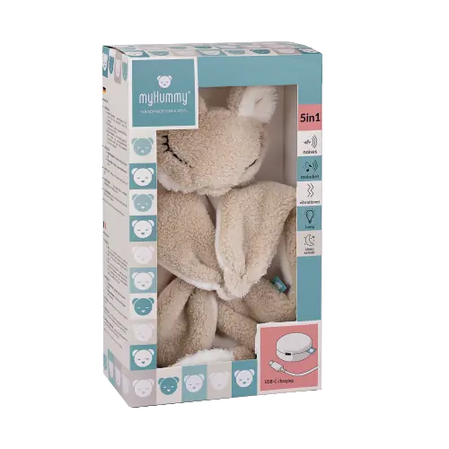 Darüber hinaus verfügt der myHummy-Mechanismus über Vibrationen, die an einen Herzschlag erinnern und den Kleinen das Gefühl geben, in der Umarmung ihrer Mutter zu sein.