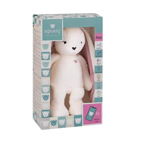 myHummy 5in1 wurde entwickelt, um dem Baby beim Einschlafen und Wiedereinschlafen zu helfen, wenn es nachts aufwacht, aber nicht, um die ganze Nacht eingeschaltet zu bleiben, da dies den zirkadianen Rhythmus stören würde. In Übereinstimmung mit den Empfehlungen von Fachleuten empfehlen wir, das Licht auszuschalten, sobald das Baby eingeschlafen ist. Das Licht schaltet sich nach 2 Stunden automatisch aus.
