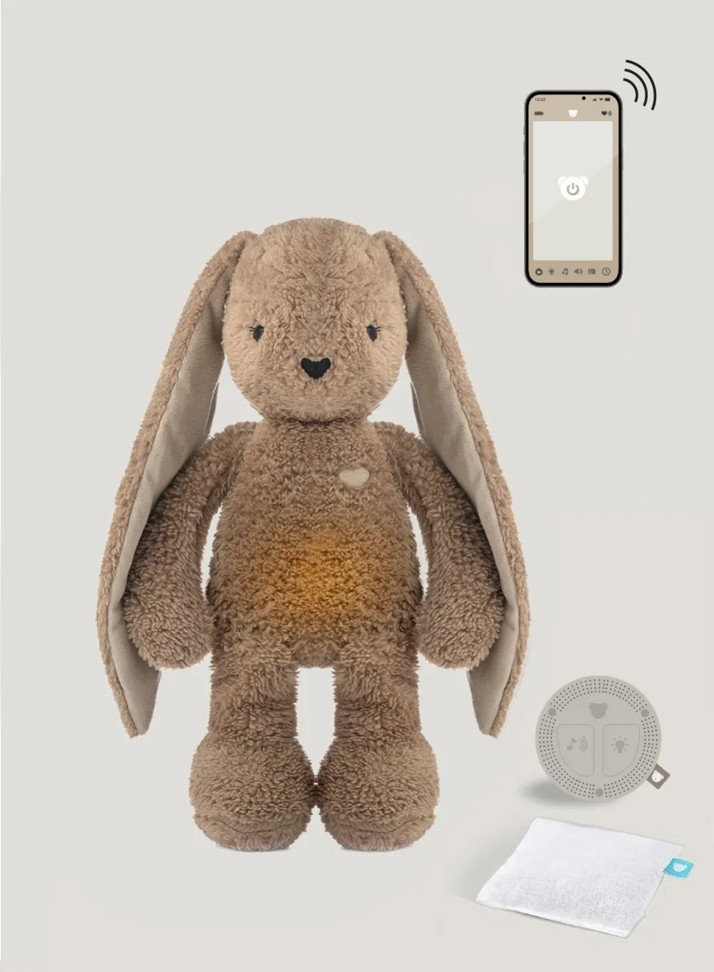 Der myHummy 7-in-1 Hase in Braun ist ein kuscheliger Premium-Freund, der den ruhigen Schlaf Ihres Kindes auf höchstem technologischem Niveau unterstützt. Gefertigt aus weichen, zertifizierten Materialien, vereint dieser Hase maximale Sicherheit mit modernster smarter Steuerung. Dank des natürlichen Körnerkissens bietet er zudem sanfte Hilfe bei Bauchspannungen und Koliken.