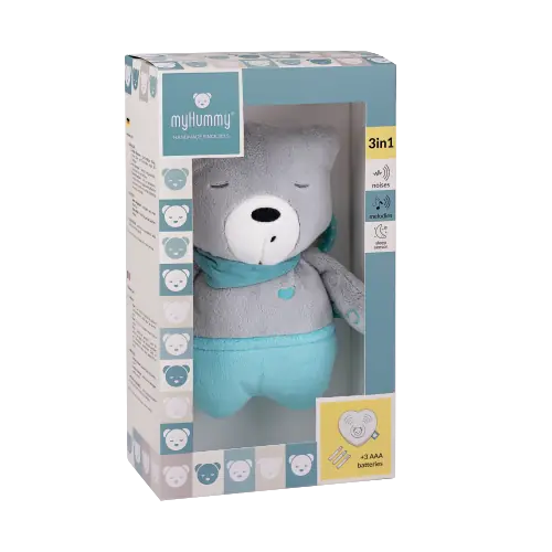 Das Herz von myHummy spielt drei Arten von beruhigendem Rauschen: weißes Rauschen, Braunes Rauschen (Regengeräusch) und Rosa Rauschen (das Geräusch von Mamas Bauch) sowie zwei sanfte Melodien, um sich optimal an die Bedürfnisse jedes Kindes anzupassen. Der Basis-Mechanismus spielt die Klänge 30 Minuten lang, bevor er sich automatisch abschaltet. Dank des integrierten Schlafsensors wird das Gerät automatisch wieder aktiviert, sobald Ihr Baby weint oder Umgebungsgeräusche erkennt.